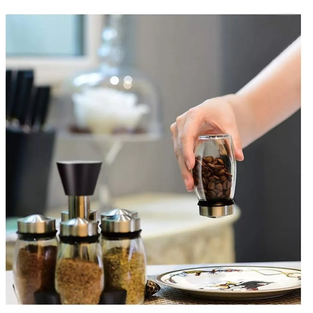 Acceso Instantáneo con Interruptor Giratorio: La característica clave de este set es su interruptor giratorio, que permite seleccionar el condimento deseado de forma rápida y sencilla. Cada tarro individual (con una capacidad de 100 ml) es ideal para almacenar especias secas, garantizando que su frescura y sabor se mantengan intactos.