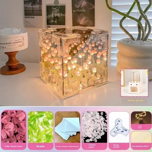 Diseño 2 en 1: espejo decorativo y lámpara LED de tulipanes infinitos